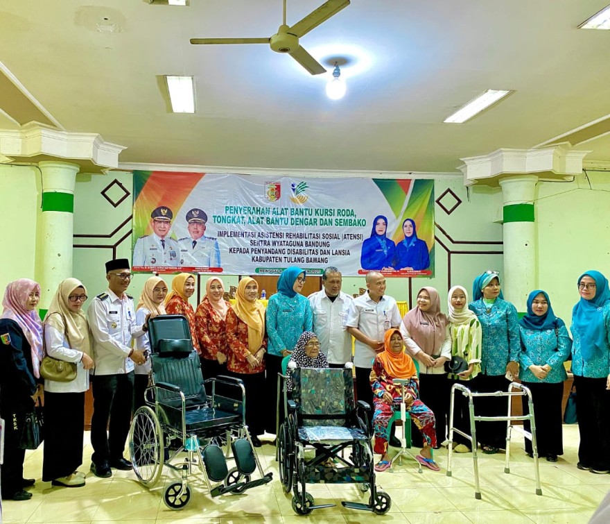 Acara yang berlangsung di Aula Islamic Center Menggala dan penyerahan alat bantu tersebut dilakukan langsung oleh Kepala Dinas Sosial Tulang Bawang dan Ketua Tim PKK Tulang Bawang Ibu. Helinawati, S.H.