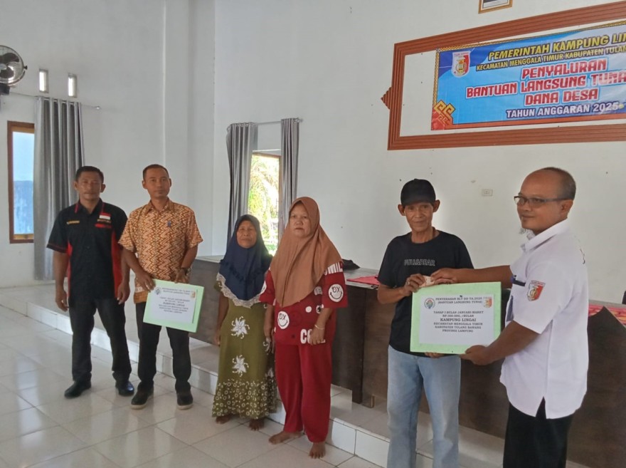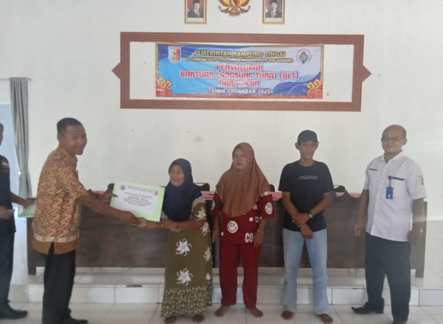 Aparatur Kampung Lingai melaksanakan pembagian Bantuan Langsung Tunai ( BLT ) Dana Desa periode pertama tahun 2025, kegiatan tersebut berlangsung di Balai Rakyat Kampung Lingai, Kecamatan Menggala Timur, Kabupaten Tulang Bawang pada hari Kamis 13 Maret 2025.